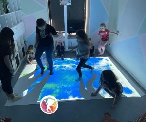 – podłóg interaktywnych, które wyostrzają zmysły, ćwiczą spostrzegawczość i refleks oraz uczą matematyki, angielskiego i zachowań społecznych,