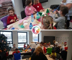 Poza tym, że dzieci mogły korzystać do woli z podłóg interaktywnych na realizowanych warsztatach i poduczyć się matematyki poprzez różnorodne gry oferowane dzięki Kartom Grabowskiego, to dodatkowo swoich sił spróbowali i świetnie im wszystko wychodziło w technikach decoupage, powstały rewelacyjne ozdoby świąteczne oraz było mnóstwo śmichu i zabawy przy grach planszowych.